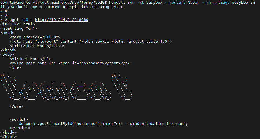kubectl run -it busybox --restart=Never --rm --image=busybox sh